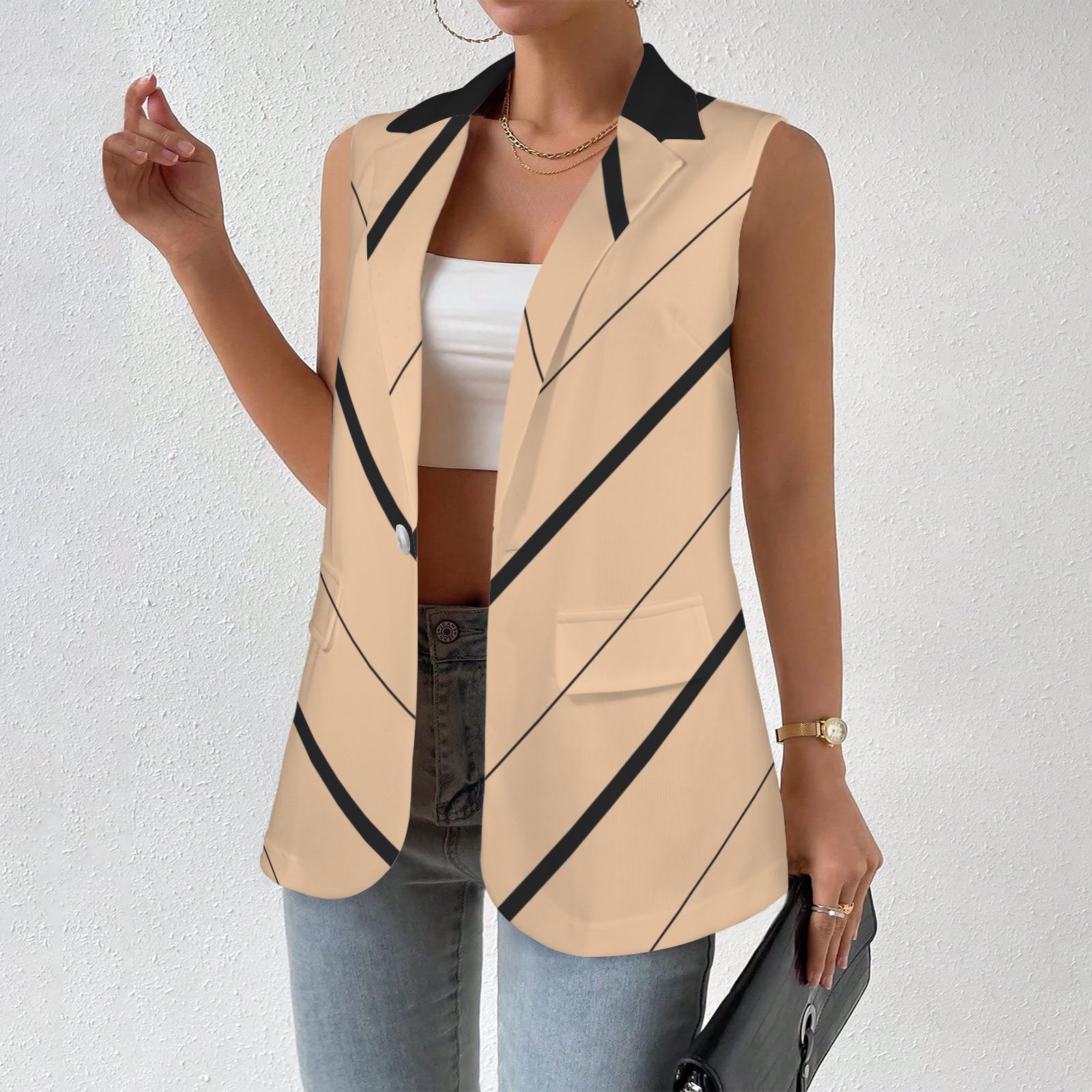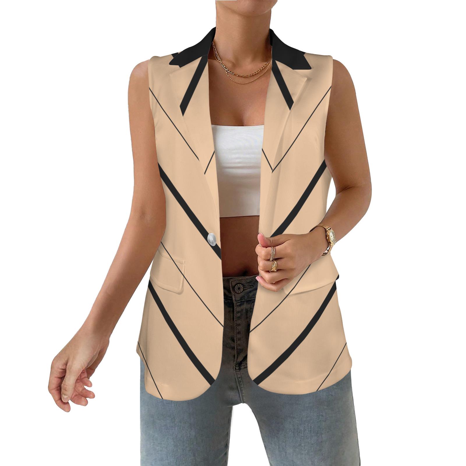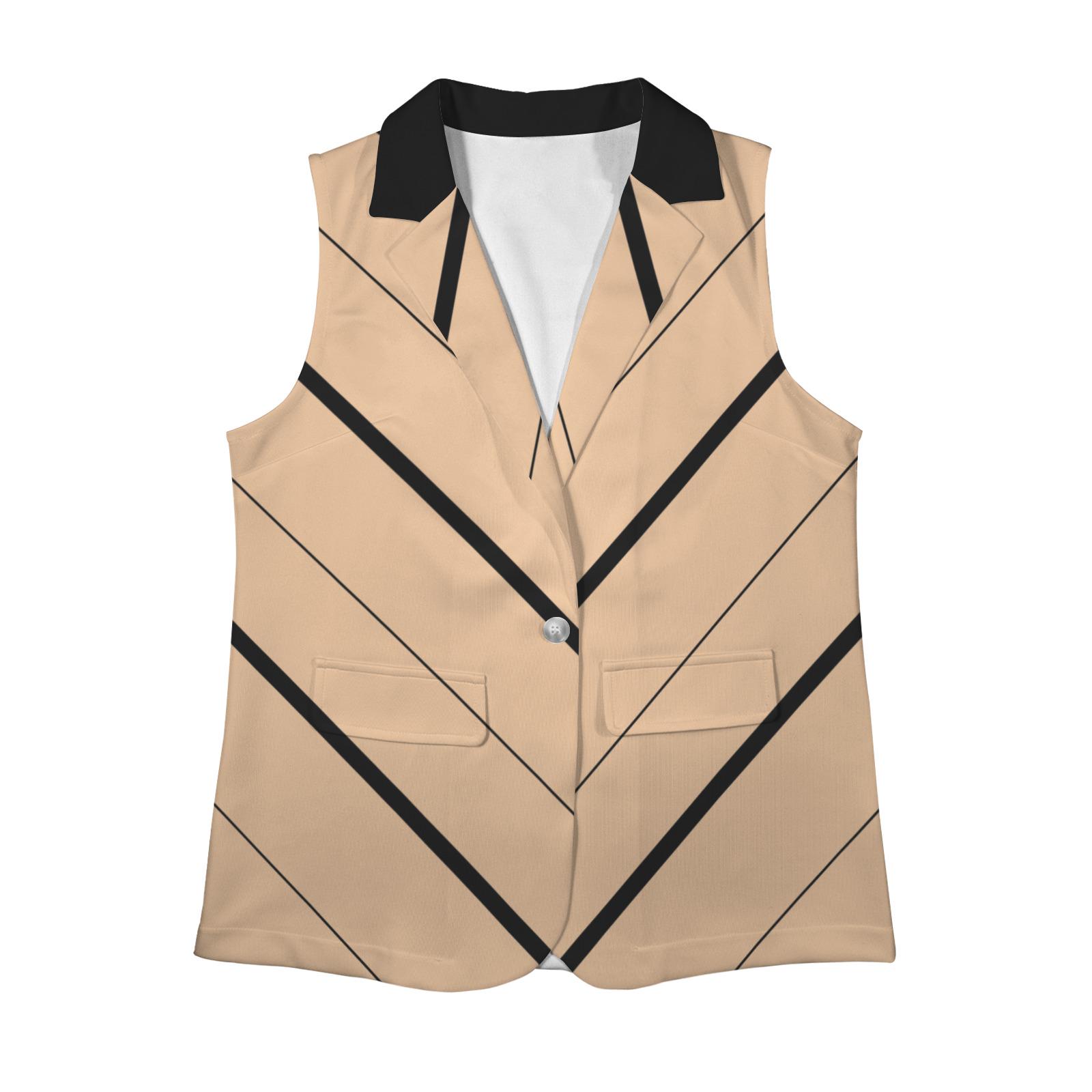 "Elevate your layering game with the Geometric Lines Sleeveless Blazer, featuring the same striking abstract pattern as our popular jacket in sophisticated taupe and black. This versatile vest adds instant polish to any outfit while maintaining comfort and style.