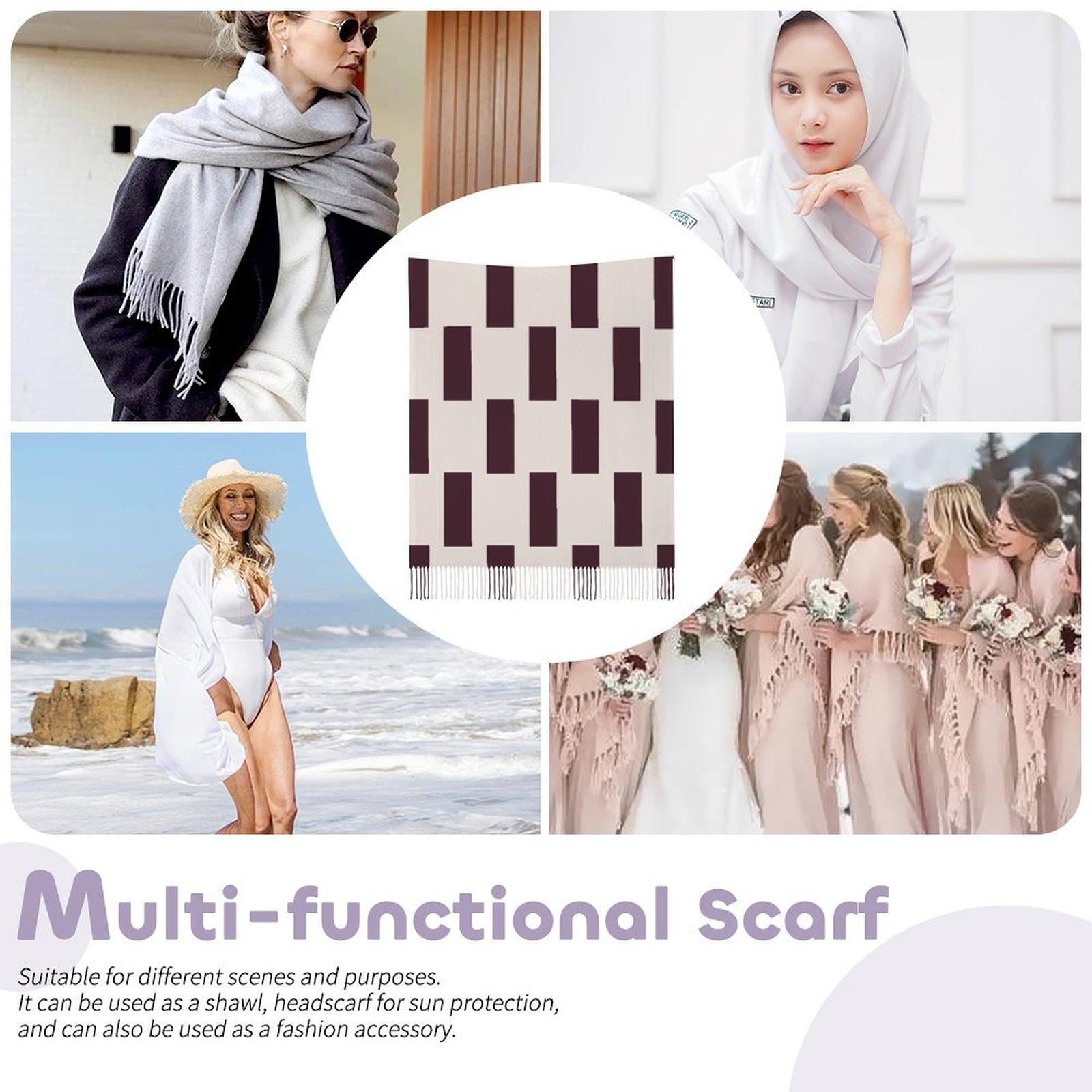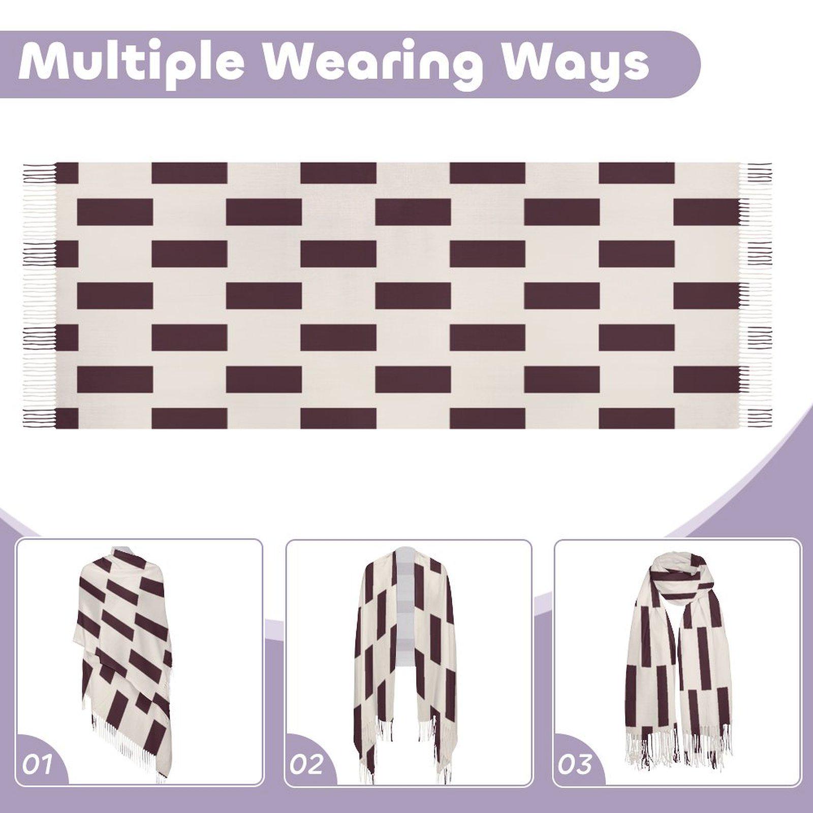 Make a bold statement with the Modern Geometric Check Tassel Scarf, featuring an eye-catching rectangular pattern in sophisticated wine and beige tones. This contemporary twist on classic checks adds instant style and artistic flair to any outfit.