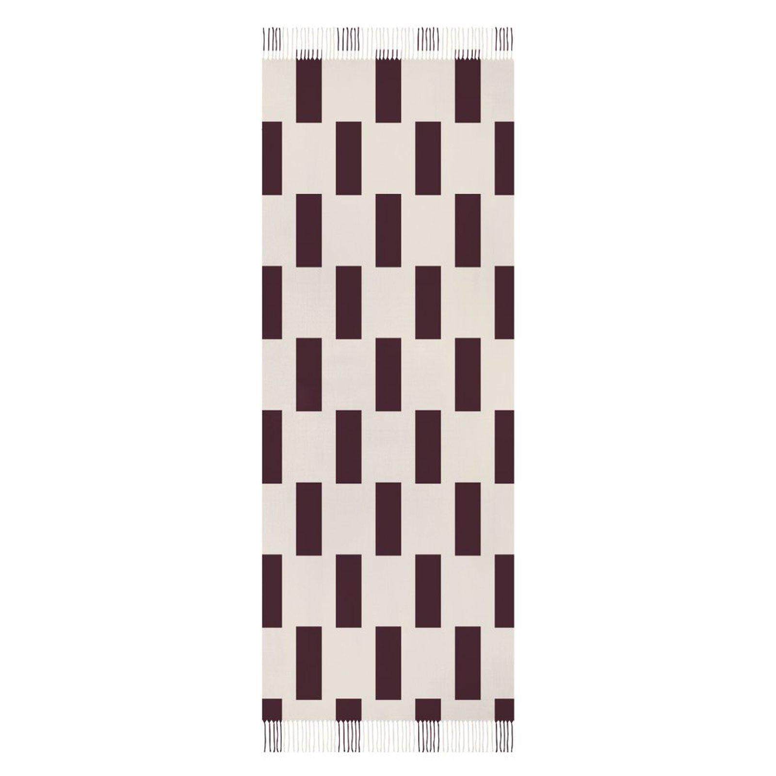 • Striking geometric rectangular check pattern in wine and beige